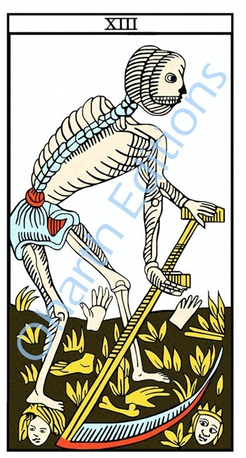 L’arcane sans nom évoque un changement, une coupure entre le monde connu des effets et celui inconnu des causes. Cette lame inaugure l’entrée dans le plan de l’esprit. Le lâcher-prise du Pendu (12) est achevé par la Non Nommée qui emmène l’initié vers sa réalisation.