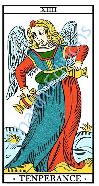 L’ensemble du personnage irradie une quiétude et une bien-veillance qui sont d’ordre cosmique. Le regard est détaché, il a pris de la hauteur. Ceux qui rencontrent Tempérance entrent dans une logique plus vaste que leur propre individualité, ils accèdent à l’universel.